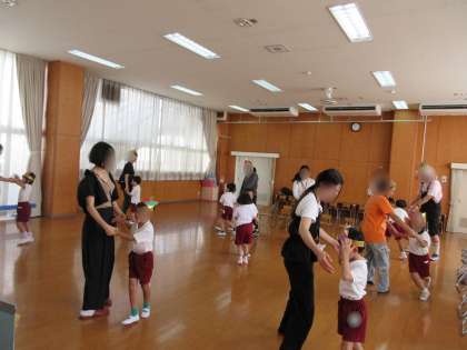 くりにいせんせい(園長先生)の楽しいお話を聞いたり、おうちの方と一緒にふれあい遊びや体操をしたりと、とっても楽しい誕生会でした♪