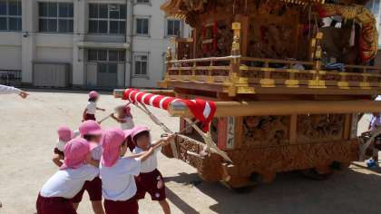 だんじりを曳いたり、道具を触ったりして、大喜びの子どもたちでした^-^