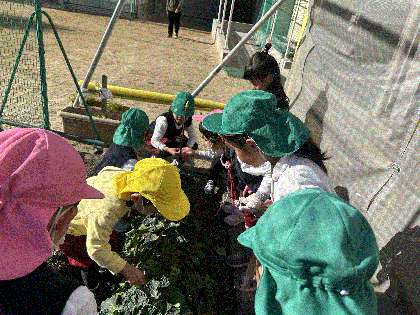 朝、畑のところで遊んでいた子どもたちが、野菜の上にキラキラと光っているしずくが固まっていることに気付きました。