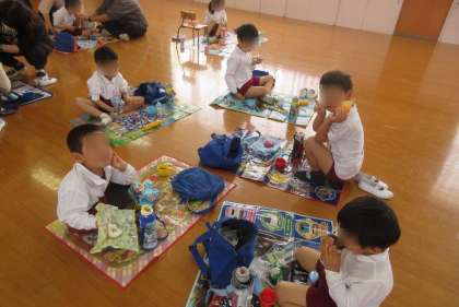 期待がふくらむよう、幼稚園で、遠足ごっこをしました。