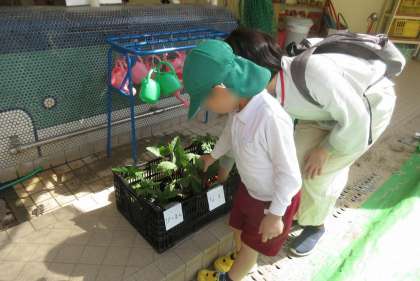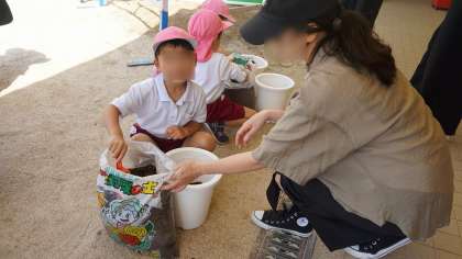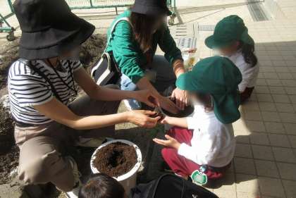 おうちの人は、子どもたちが土を入れたり、苗を植えたりするのをそっと支えてあげており、親子の関わりの大切なひと時となりました。