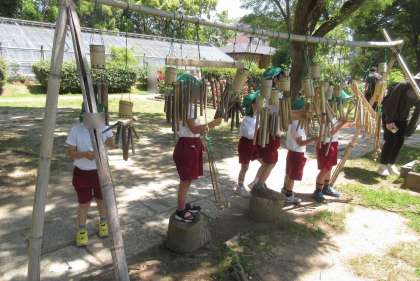 公園には、竹でつくられた楽器や輪投げ、どんぐり転がしなどもありました。