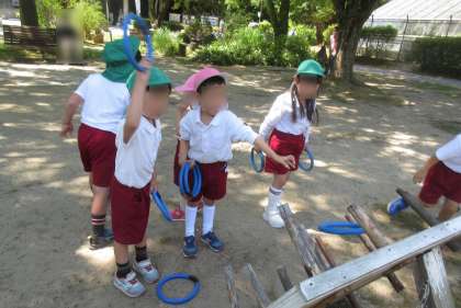 「輪投げ、難しいけど、狙ったら、入ったよ!」