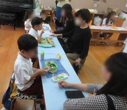 おうちの人に、お弁当食べる姿を見てもらうことを楽しみにしていた子どもたち。