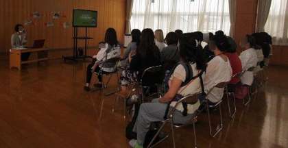 弁当参観の後、保護者向けに、幼稚園の養護教諭と小学校の栄養教諭から、食に関する話がありました。
