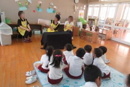 絵本の会の方が来てくださり、いろいろなお話や絵本を聞かせてくれました。