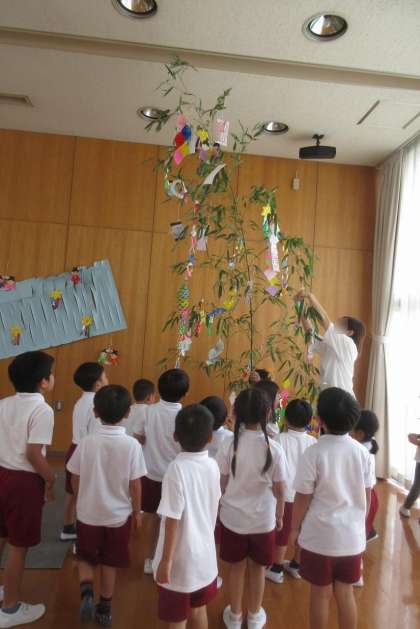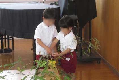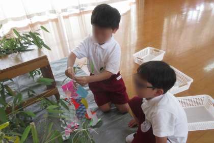 まつ組が結び方を教えながら、さくら組の飾りをつけてくれました。