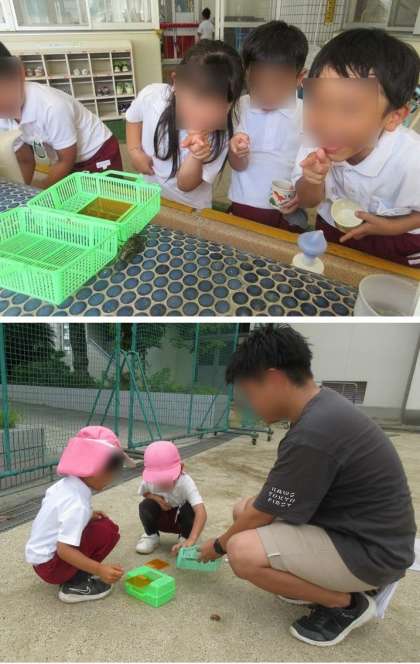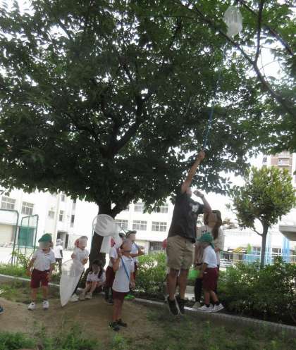 先生たちも一緒になって、虫を探したり、捕まえたり…♪