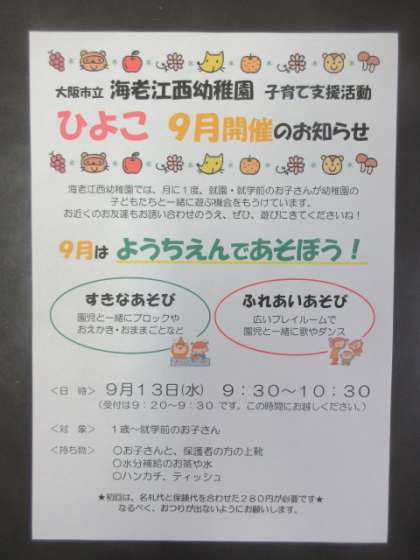 次回は、9月13日(水)9:30〜(受付:9:20〜9:30)に開催しますので、ぜひ遊びにきてください。