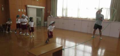 大縄跳びも、ジャンプをするタイミングがうまくつかみにくい子どももいましたが、何度もチャレンジし、少しずつ上手になってきています。