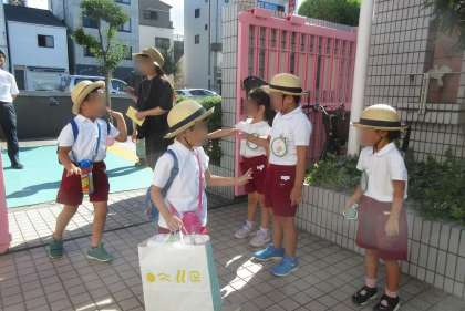 「おはようございます!」と元気よく挨拶をしたり、ハイタッチをしたりしていました。