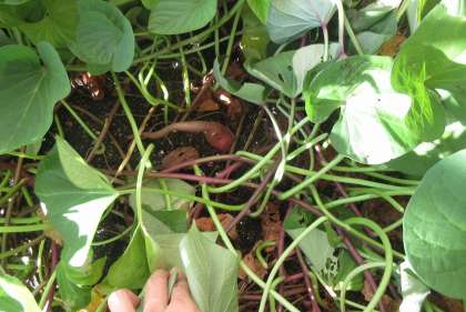 おいもがあるよ! 公開日 2023/09/29 更新日 2023/09/29 子どもの様子 外遊びをしていると、 「おいもできてる!」 「見て!!」 と大発見をした子どもたち♪ たくさんの葉の下をよく見ると・・・ おいもが少し頭を出していました。 「もっとおいもあるかな?」 「掘ってみたい!」 どのくらいおいもが実っているか、収穫が楽しみですね♪ いいね(0)