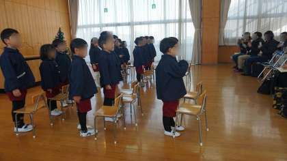 第2学期終業式をしました! 公開日 2023/12/22 更新日 2023/12/22 園行事 2学期の締めくくりとして、終業式を行いました。 園長先生と一緒に、2学期の楽しかったことを振り返り、いろいろな気持ちを味わったことを感じられるお話を聞きました。 おうちの人に、大好きな歌を聞いてもらい、自信をもって歌っていました。 2学期に様々な経験をし、一回り成長した子どもたち。 また3学期、子どもたちに会えることを、先生たちは楽しみにしていますよ♪ いいね(0)