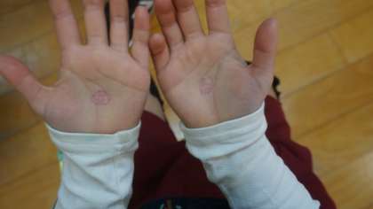 なかなか手ごわいバイキンスタンプでしたが、「もう1回やりたい!」とお弁当の前にも子どもたちがやってきて、丁寧に手洗いをしている姿をみて嬉しく思いました。