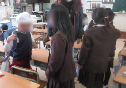 海老江西小学校の1年生の教室にお邪魔させてもらい、まつ組が授業体験をしました。