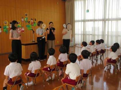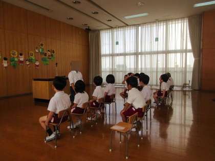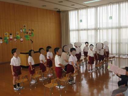 始業式では、園長先生の話を聞いた後に、おうちの方と一緒にみんなで『とんぼのめがね』の歌を歌いました♪一緒に歌えて嬉しかったですね。