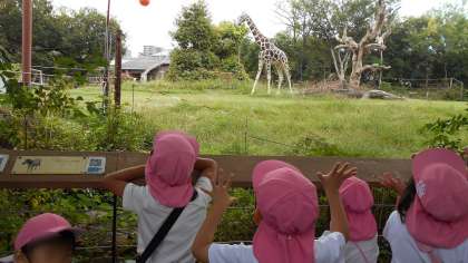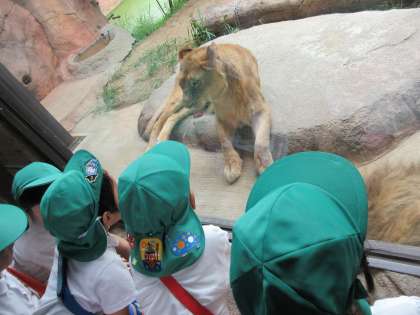 「先生、見て見て!キリンさんご飯食べてるよ。」「うわぁ〜!ライオンさん強そう!!」などと、楽しそうにお話しながらいろいろな動物たちを見て回りました。