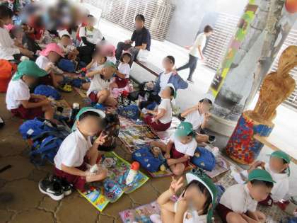 お昼には、おうちの方が作ってくれたおいしいおにぎりをパクリ!