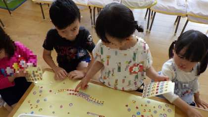 一つの活動を、終わったら切るのではなく、楽しかった活動を形を変えて継続します。そうすることで、自分のやっていることが復習され、また、更に工夫したり、違う楽しさを見出したりしていきます。