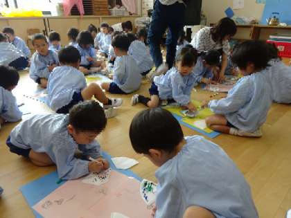 今度はみんなで大きなこいのぼりをつくろう!!と
