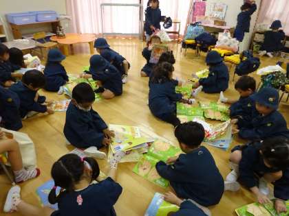 進級児の友達は、今年の絵本はどんなのかな〜と楽しみにしていたようです。