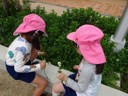 しろつめ草やクローバーにも興味深々です。指輪にしたり、ブレスレットにしたり、花が様々な形にかわります。