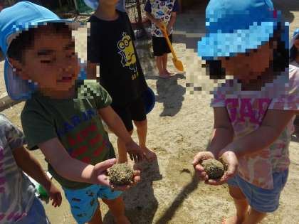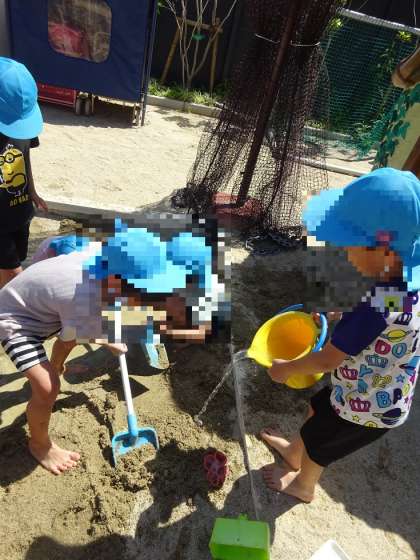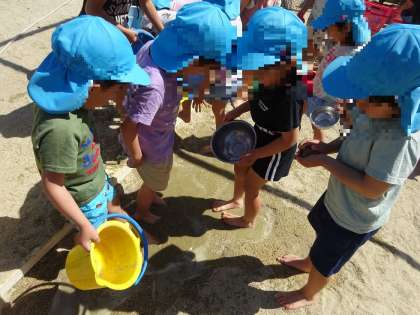 どろんこ遊び(5歳児) 公開日 2024/05/10 更新日 2024/05/10 お知らせ 今日からどろんこ遊びが始まりました。 良いお天気で水も泥も冷たくて気持ちがよかったです!子どもたちも「気持ちいい!」と、とても喜んでいました。 スコップで水が流れるように掘ったり、バケツいっぱいに水を汲んだり、泥団子をつくったりなど、思う存分遊んでいました。 いいね(0)