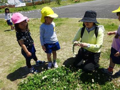 正連寺公園に行ってきたよ。 公開日 2024/05/14 更新日 2024/05/14 お知らせ 伝法東公園のあとは正連寺公園に行きました。しろつめ草がたくさん生えていて「お花いっぱい!」と摘みはじめました。摘んだしろつめ草で園長先生が冠を作ってくれると「かわいい!」「すごい!」と大喜びでした。 いいね(0)