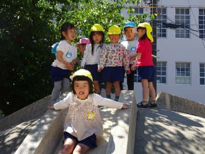 「自分で上まで登れたよ」「先生、見ててね、滑るよ〜」と、繰り返し楽しんでいました。