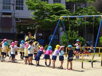 今日はお天気にも恵まれ、4・5歳児みんなで伝法東公園に遊びに行ってきました。