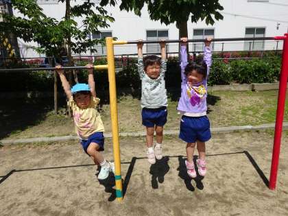 写真は、「誰が長くつかまっていられるかやってみたい!」と遊んでいた様子です。