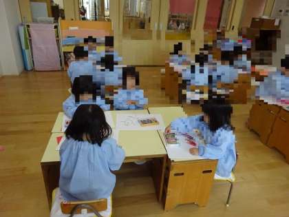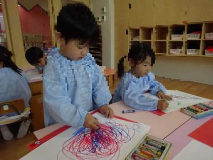 クレパスの使い方を教えてもらって、紙にクレパス遊びをしました。