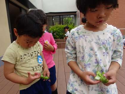 「本当にふわふわのベットや!!」とソラマメの綿を触ったり、匂いを嗅いで「いい匂い」と喜んだりしていました!