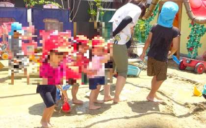 そら組さんと一緒にどろんこ遊び(3歳児)