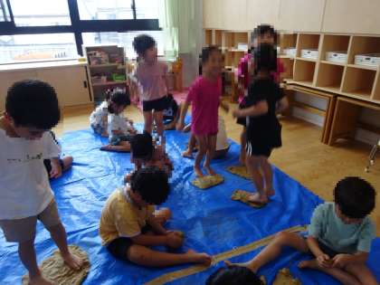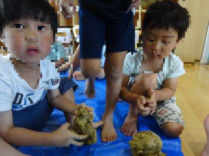 足で踏んだり手でこねたりなど全身をつかって楽しんでいました!