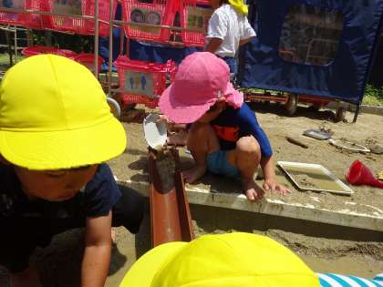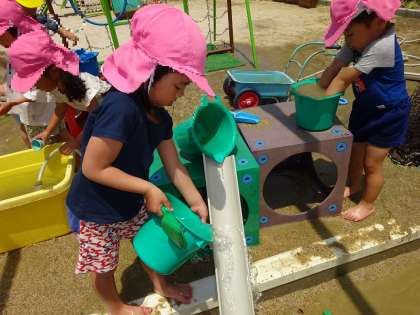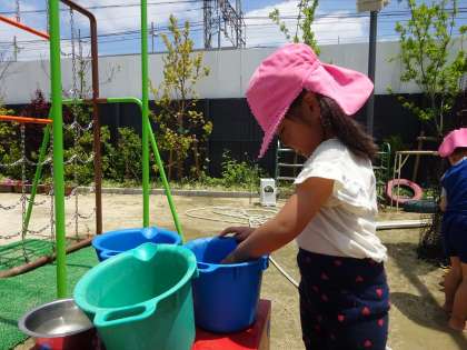お水たくさん流れたよ!(4歳児) 公開日 2024/05/21 更新日 2024/05/21 お知らせ 今日も引き続き泥んこ遊びを楽しみました! お水を上手にすくって上から下に流したり、流した先にまたお皿を置いてお水をためたりと、それぞれが考えながら楽しく遊ぶことができました。 また明日も楽しく遊びましょうね。 いいね(0)