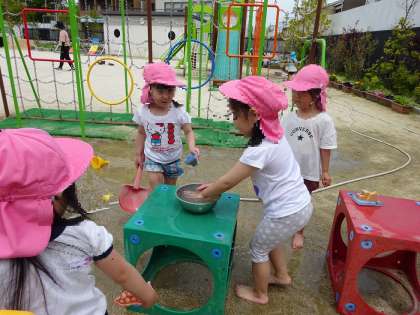 水の道を作って流したり、スライダーのようなものをつくり水を流したり、どろだんごを作ったりなどさまざまな遊び方で楽しみました。