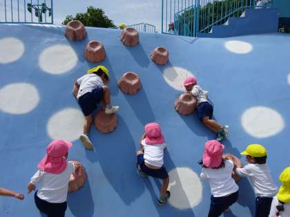 遊具で遊ぶ時の約束をみんなでして、遊びました。