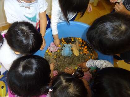 ダンゴムシさん かわいいね 公開日 2024/05/27 更新日 2024/05/27 お知らせ 園庭でみつけたダンゴムシのおうちをつくってあげた、いちご組さん。 「ともだちいれてあげよう」と 砂場の虫の形のおもちゃを入れてあげています。 「これ食べるかな」とキンカンをたくさん拾って入れてあげています。 「茶色の葉っぱが好きなんだって。そら組さんが言ってたよ」 と、茶色の葉っぱを入れてあげています。 ダンゴムシを大事にする気持ちが伝わってきます。 優しいいちご組さんです。 いいね(0) 伝法幼稚園