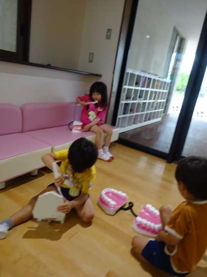 玄関では、歯の模型を使って歯磨きをして遊んでいました。