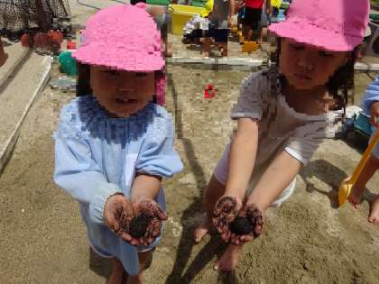 どろだんご作りを楽しむ子も増えてきて、作っただんごを嬉しそうに見せにきてくれます。(写真2)