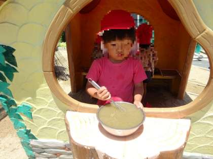 水と砂で、カレーをつくっていました。