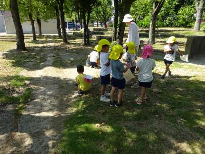 伝法グラウンドへお散歩(4歳児) 公開日 2024/06/14 更新日 2024/06/14 お知らせ 今日は伝法校外グラウンドに4歳児でお散歩に行きました。 公園には、チョウチョウが飛んでいたり、ダンゴムシが隠れていたり、 花や落ち葉、木の枝がたくさん落ちていました。 みんなで自然を集めよう、とたくさんの自然を見つけて帰ってきました。 「ダンゴムシ、どんなところにいるのかな?」 「先生、この木の枝面白い!」 と自分なりの発見を楽しんでいました。 いいね(0)