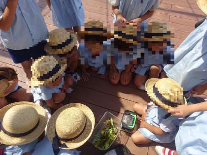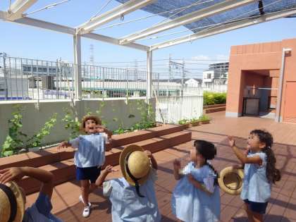 少し前からそら組で育てていたアオムシが、アゲハチョウになり子どもたちもとても喜んでいました!「幼稚園2回お休みやからアゲハチョウ逃がしてあげよう!」と話し合い、ウッドデッキからバイバイしました!