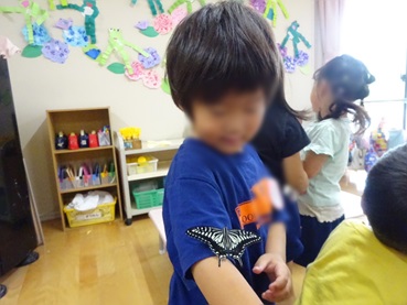 と、交代でチョウチョウに触れ、一緒に遊びました。