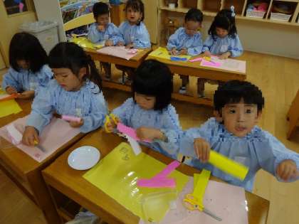 ハサミもゆっくり動かし、「先生!真っすぐ切れた!」と自分なりに丁寧に取り組んでいました。