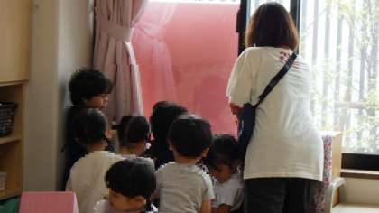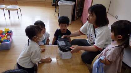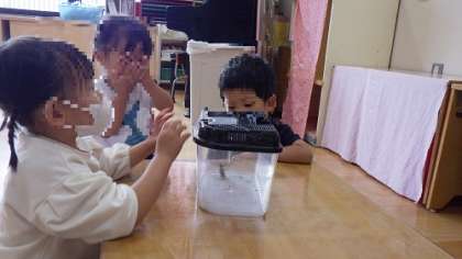 登園して早速にそれを見つめた3歳児は、興味津々…。