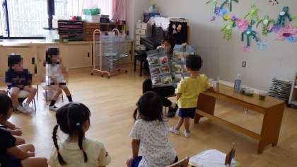4歳児話し合い 公開日 2024/06/24 更新日 2024/06/24 お知らせ 4歳児も話し合いをしています。 自分で作った色水を友達に紹介し、また、色水(ジュース)の香りを友達に知らせています。 友達に聞いてほしい!と思う気持ちを大切にし、自分の言葉で自分の思っていることを表現しています。 いわばプレゼンですね! 大人でも難しいことを、3歳児、4歳児、5歳児が取り組んでいます。 「友達に話したい!」という純粋な気持ちの表現です。 頼もしい姿です。 いいね(0)