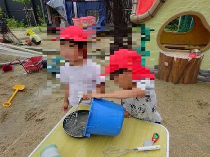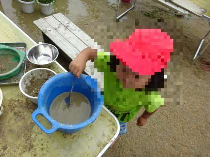 どろんこでもごちそうをつくっているよ(3歳児) 公開日 2024/06/25 更新日 2024/06/25 お知らせ 砂場でどろんこ遊びを楽しんでいます。 砂、水、泥の感触を楽しみながら、ごちそうをつくっています。 ピザ、カレーをつくっていましたよ。 「美味しくなるように、いっぱい混ぜるねん」 混ぜるときに聞こえる「ザラザラザラザラザラザラ・・・・」という音を楽しんでいる子もいます。 それぞれの楽しみ方が、ありますね。 いいね(0)