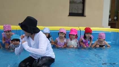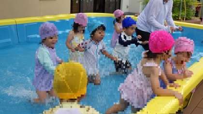 プール遊び(3歳児) 公開日 2024/06/28 更新日 2024/06/28 お知らせ 3歳児も、幼稚園で初めてのプール遊びです。 少しずつ入って、水に慣れていきます。 ゆっくりゆっくり入って、子どもたちの表情を見ながら進めています。 見学の子どもたちも、一緒にダンスをしたり、楽しく過ごせるようにしています。 <プール遊びは一部ぼかしを強めています> いいね(0)